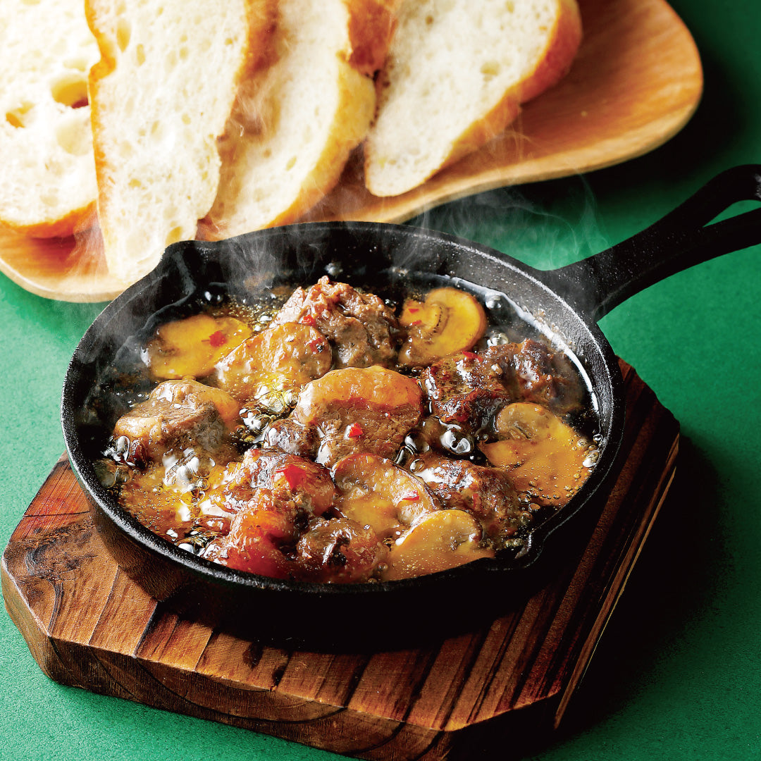 ゴロゴロと入った牛肉と、肉厚なマッシュルーム。